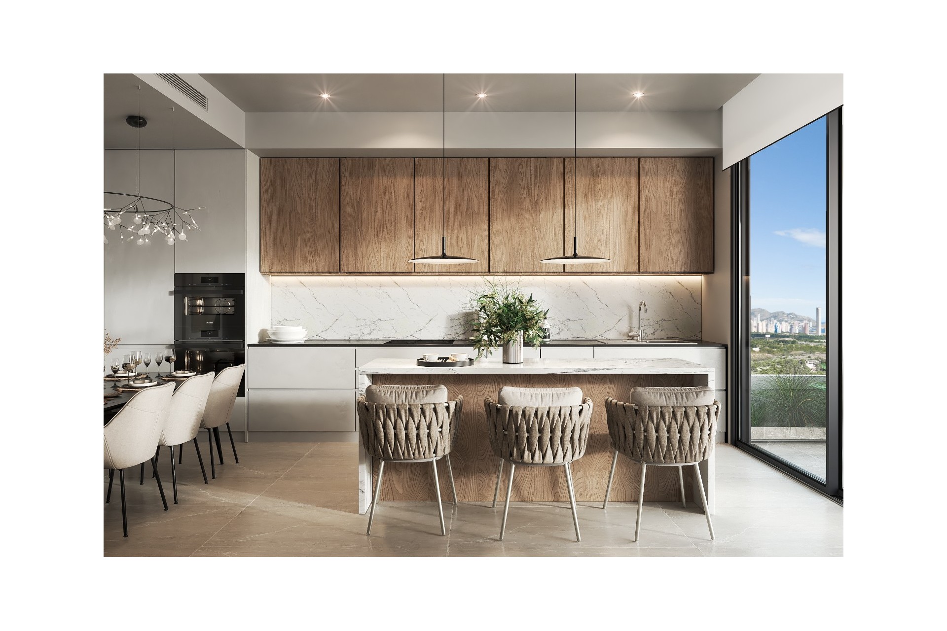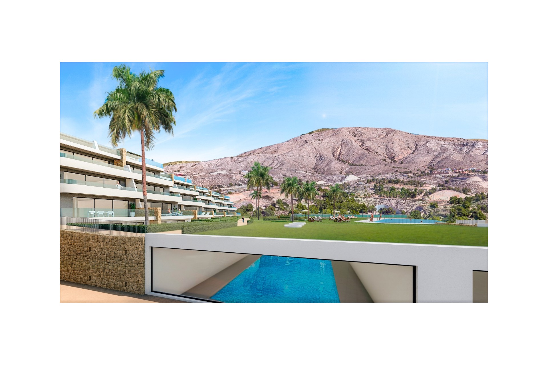 La promoción está situada entre el mar y el pueblo español de Finestrat, contra la ladera de una montaña con vistas al mar Mediterráneo y a la ciudad de Benidorm. Todos los pisos tienen 2 dormitorios y 2 baños, están orientados al sur o al este y tienen vistas a las montañas, al mar y a Benidorm. El aire acondicionado está totalmente instalado y la cocina está equipada con todos los electrodomésticos. Cada vivienda dispone de una amplia terraza/jardín y/o solarium. Una plaza de aparcamiento subterráneo y un trastero también están incluidos en el precio. Un gran centro comercial se encuentra a 3 km de distancia y el aeropuerto de Alicante se puede llegar después de 45 minutos. Precios sujetos a disponibilidad. Póngase en contacto con nosotros para más información.