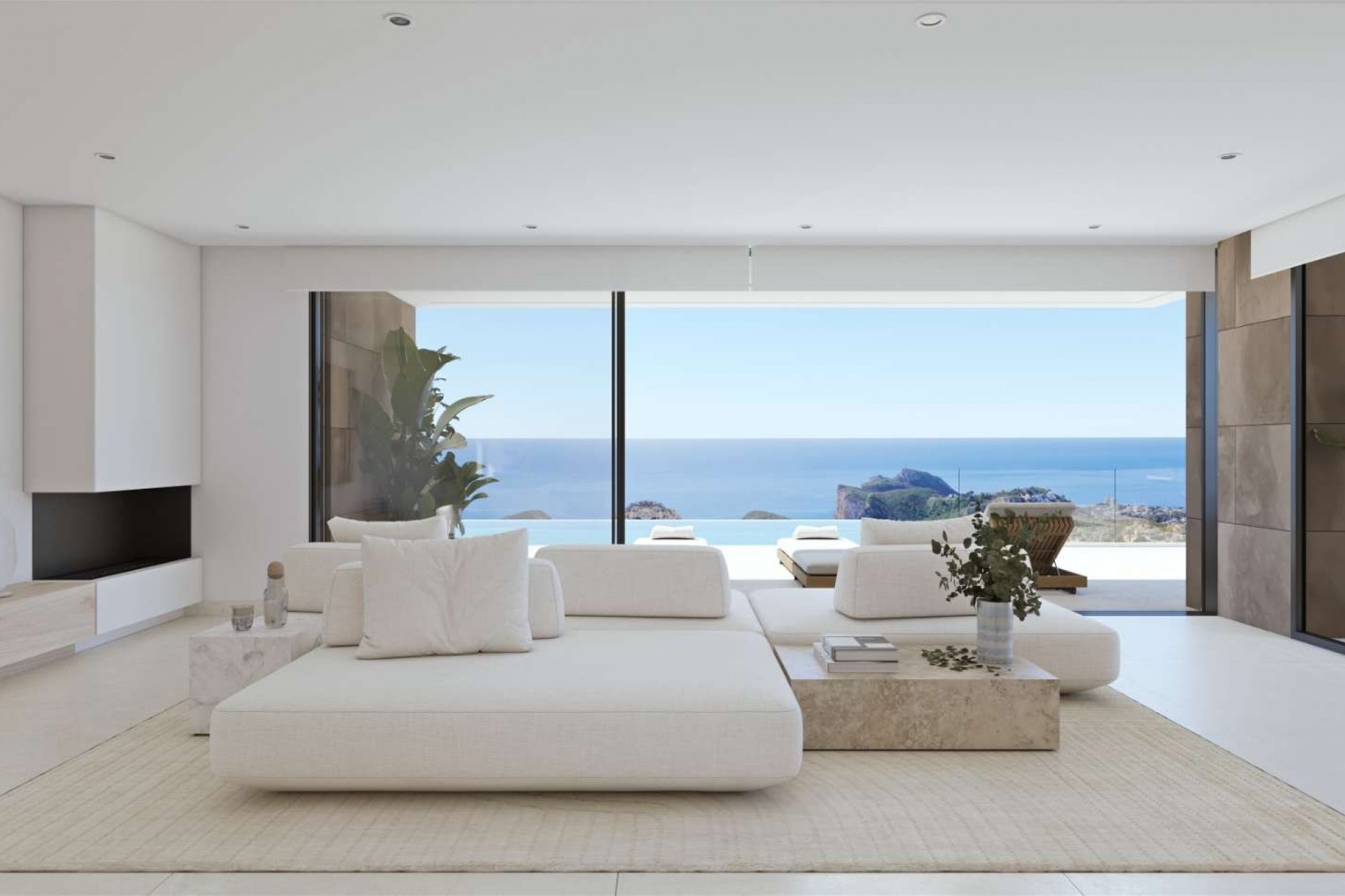 Descubra esta exclusiva villa de lujo en venta en Cumbre del Sol, situada en una prestigiosa zona residencial en Benitachell, entre Jávea y Moraira. Esta excepcional propiedad combina arquitectura mediterránea moderna, vistas panorámicas al mar y acabados de alta gama, ofreciendo un estilo de vida incomparable en la costa norte de la Costa Blanca. Diseñada para aprovechar al máximo la luz natural y las impresionantes vistas, cada espacio de esta vivienda contemporánea se abre al mar Mediterráneo y al emblemático Peñón de Ifach. Las líneas limpias, los materiales naturales y los amplios ventanales crean una conexión perfecta entre interior y exterior. La villa se distribuye en tres niveles: Planta principal: Amplia zona de estar con salón, comedor y cocina de diseño, grandes ventanales que dan acceso a una amplia terraza, comedor exterior y piscina infinita con vistas al mar. La suite principal dispone de vestidor, baño en suite con bañera exenta, ducha tipo lluvia y acceso directo a la terraza. Planta superior: Dormitorios secundarios con terrazas privadas y vistas al mar, todos con baño en suite. Sótano: Espacio luminoso y versátil ideal como gimnasio, sala de cine o apartamento de invitados, además de lavadero y trastero. Cada detalle de esta vivienda ha sido realizado con materiales de primera calidad para garantizar elegancia, funcionalidad y confort: suelos porcelánicos de gran formato, cocina de lujo, calefacción por suelo radiante, aire acondicionado por zonas y sistema domótico avanzado. En el exterior, las terrazas están diseñadas para disfrutar del estilo de vida mediterráneo. Relájese en la piscina infinita que se funde con el mar, en las zonas de descanso, el comedor al aire libre o el jacuzzi privado en el solárium, perfecto para contemplar las puestas de sol sobre la costa. Esta villa moderna con vistas al mar en Cumbre del Sol ofrece privacidad, seguridad y acceso a servicios exclusivos, colegio internacional, restaurantes, instalaciones deportivas y la pintoresca Cala del Moraig. Precios sujetos a disponibilidad. Contáctenos para más información.