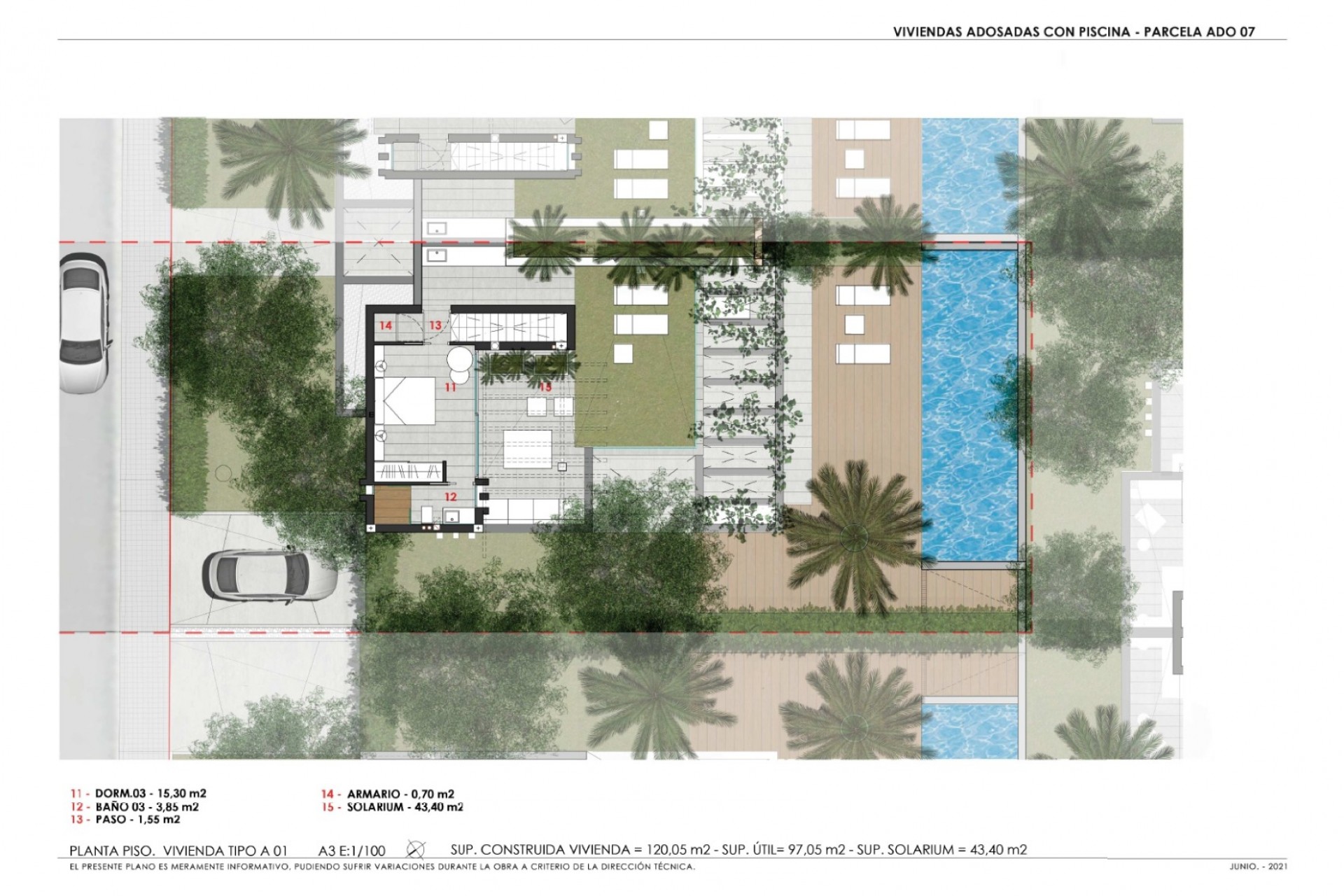 Esta magnífica villa adosada “Almanzor” está situada en The Font del Llop Golf Resort y tiene fantásticas vistas al campo de golf y las montañas. ¡Esta es la casa piloto y está lista para llaves! Se entrega con el pack de jardín, muebles, decoración, persianas, baño completo y cocina con todos los electrodomésticos. En la planta baja hay: una cocina americana con un salón comedor muy luminoso todo diáfano con grandes ventanales que se abren completamente a la terraza y al jardín, además de 2 dormitorios y 2 baños. Arriba, está el 3er dormitorio y el 3er baño y un solárium con preinstalación para una cocina de verano. Tiene su propia plaza de aparcamiento exterior y una piscina privada. Esta moderna casa adosada está construida con materiales de alta calidad y cuenta con un sistema de aerotermia que controla el aire acondicionado frío y caliente a través de un sistema de conductos, el agua caliente y la calefacción por suelo radiante.