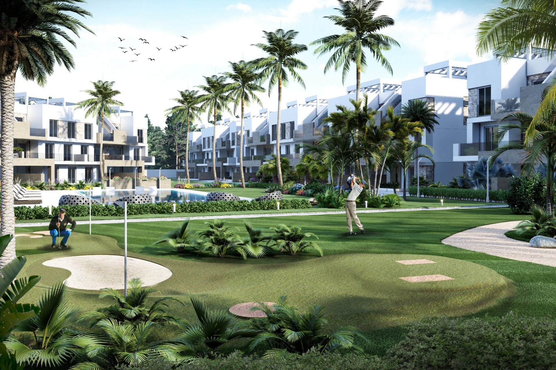 Ces appartements se trouvent dans un complexe résidentiel privé, composé de 114 logements de 2 ou 3 chambres, conçus de manière minimaliste et avec des normes de qualité élevées. Son architecture moderne s'harmonise avec les grands espaces, la nature et la piscine, offrant un environnement unique et relaxant. Les appartements sont soit au rez-de-chaussée avec un jardin, au 1er étage avec une terrasse ou au dernier étage avec une terrasse et un solarium. Ces belles propriétés sont vendues COMPLÈTEMENT MEUBLÉES avec des électroménagers, l'éclairage, les stores et la climatisation !