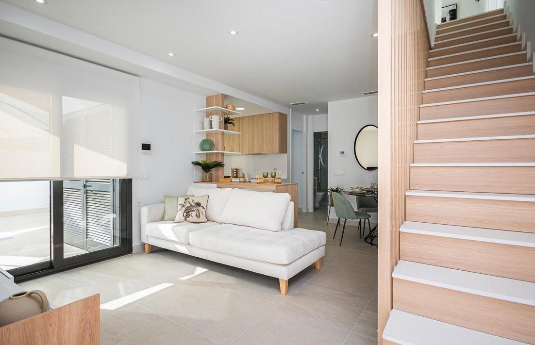 Villas de 3 chambres dans ce complexe résidentiel moderne à Torrevieja. Situé dans une urbanisation privée avec de grandes piscines et des espaces communs, il offre une vue sur la lagune salée. Les maisons, à la façade blanche et au style méditerranéen, se caractérisent par leur grande luminosité et leurs matériaux et finitions de haute qualité. Les villas mitoyennes combinent des lignes pures et minimalistes avec des éléments organiques, offrant un look élégant.