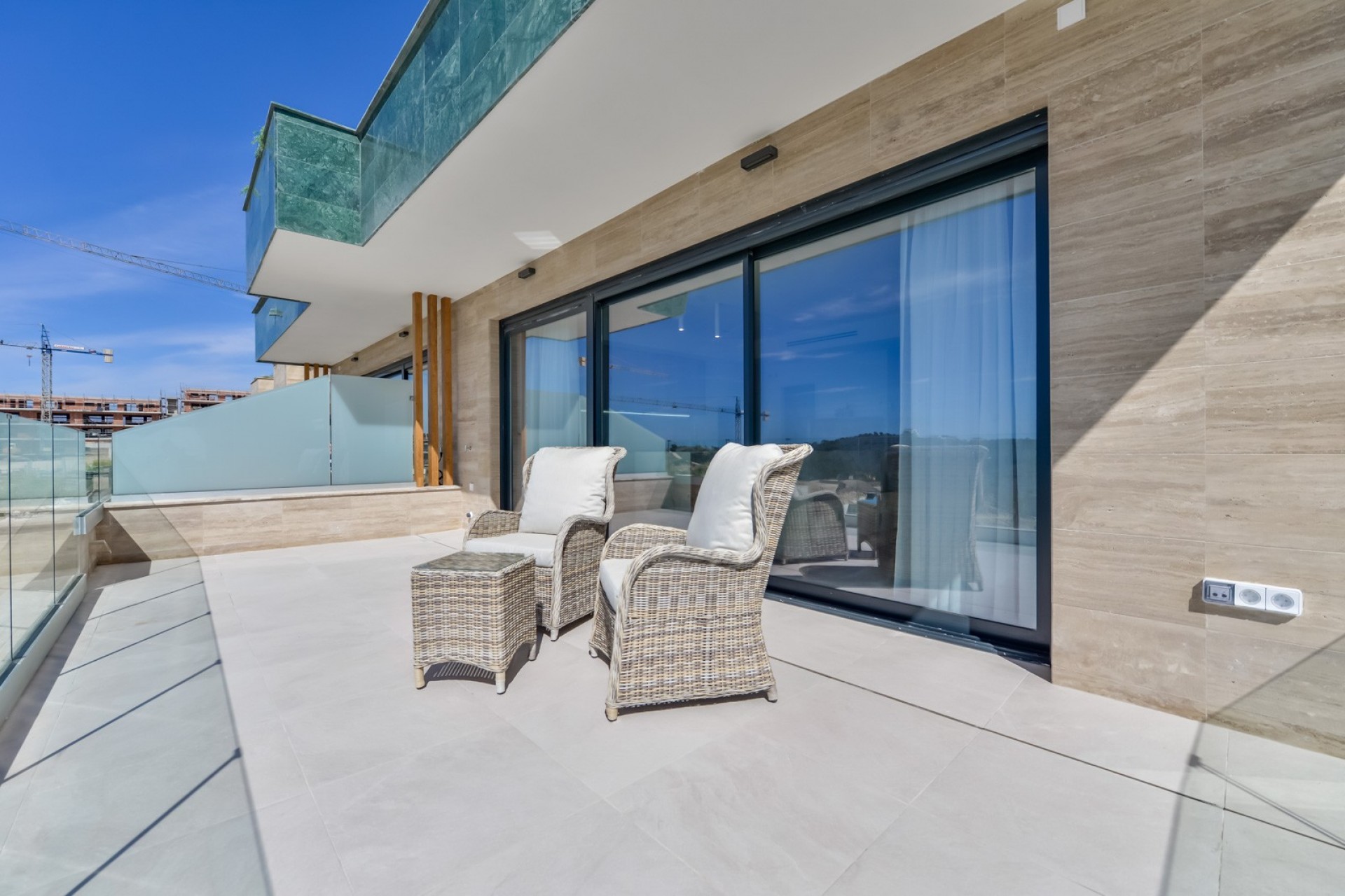 Le complexe est complété par des murs qui créent des jardins en terrasses, décorés de plantes grimpantes, d'arbustes méditerranéens et de bougainvilliers. Plongez en exclusivité avec une piscine à débordement, des courts de paddle-tennis, une piscine intérieure, une salle de sport, un spa avec jacuzzi, un sauna finlandais et un espace de coworking.