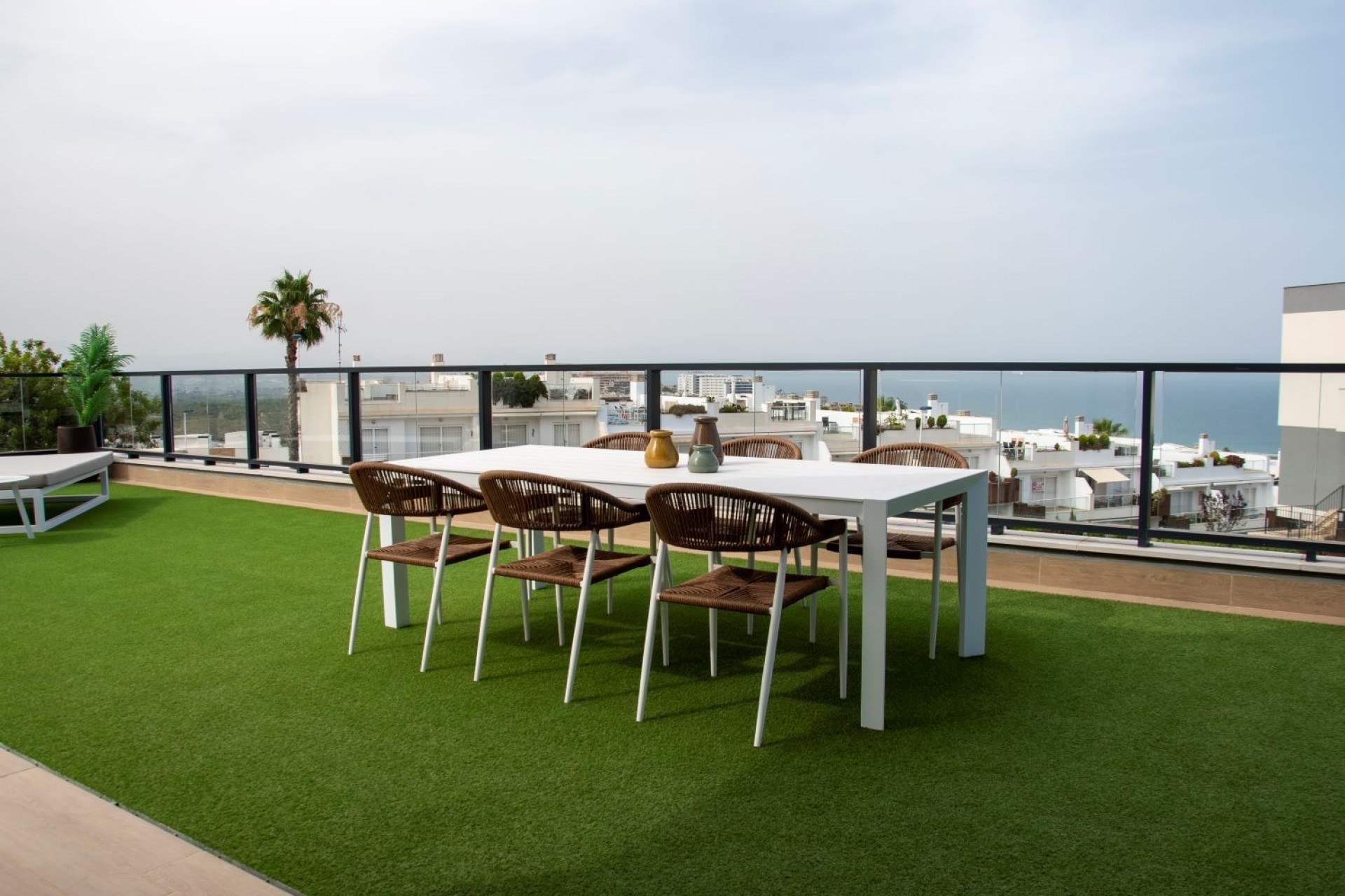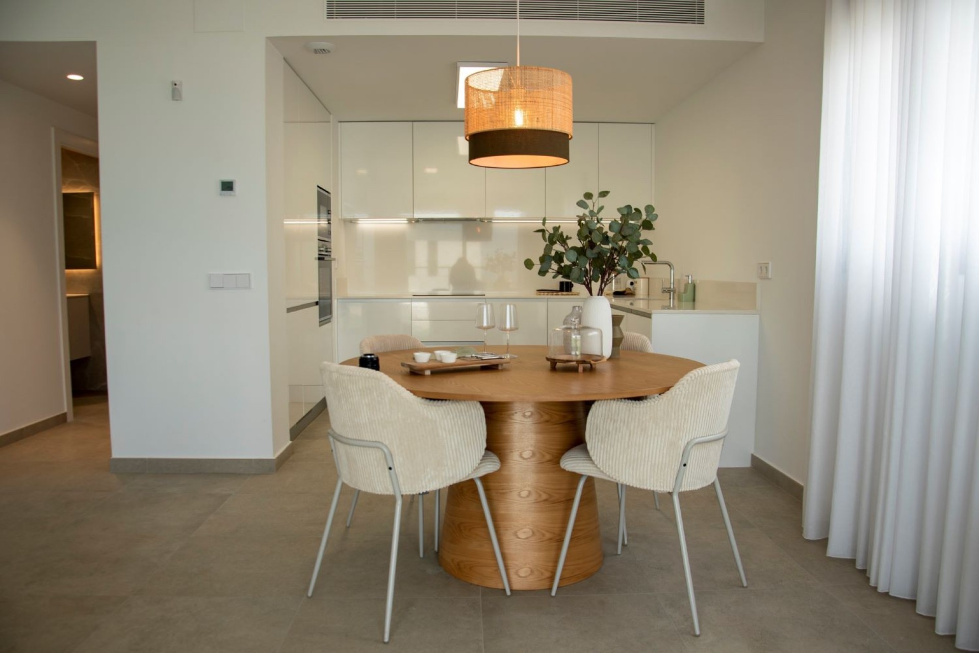 This new and modern development is located just a few minutes walk from the beautiful beach of Carabassi in Gran Alacant. All the apartments are of excellent quality. The complex has a central swimming pool, beautiful gardens, a children's play area and a bio-training trail for all ages. The apartment has 3 very comfortable bedrooms and 2 bathrooms. The open plan kitchen is connected to the spacious living room which leads to the large terrace and its own private garden. These apartments overlook the communal garden and each has its own underground parking space with storage room. This complex is located 10 minutes drive from the centre of Alicante and 5 minutes from the airport. Prices subject to availability. Please contact us for more information.