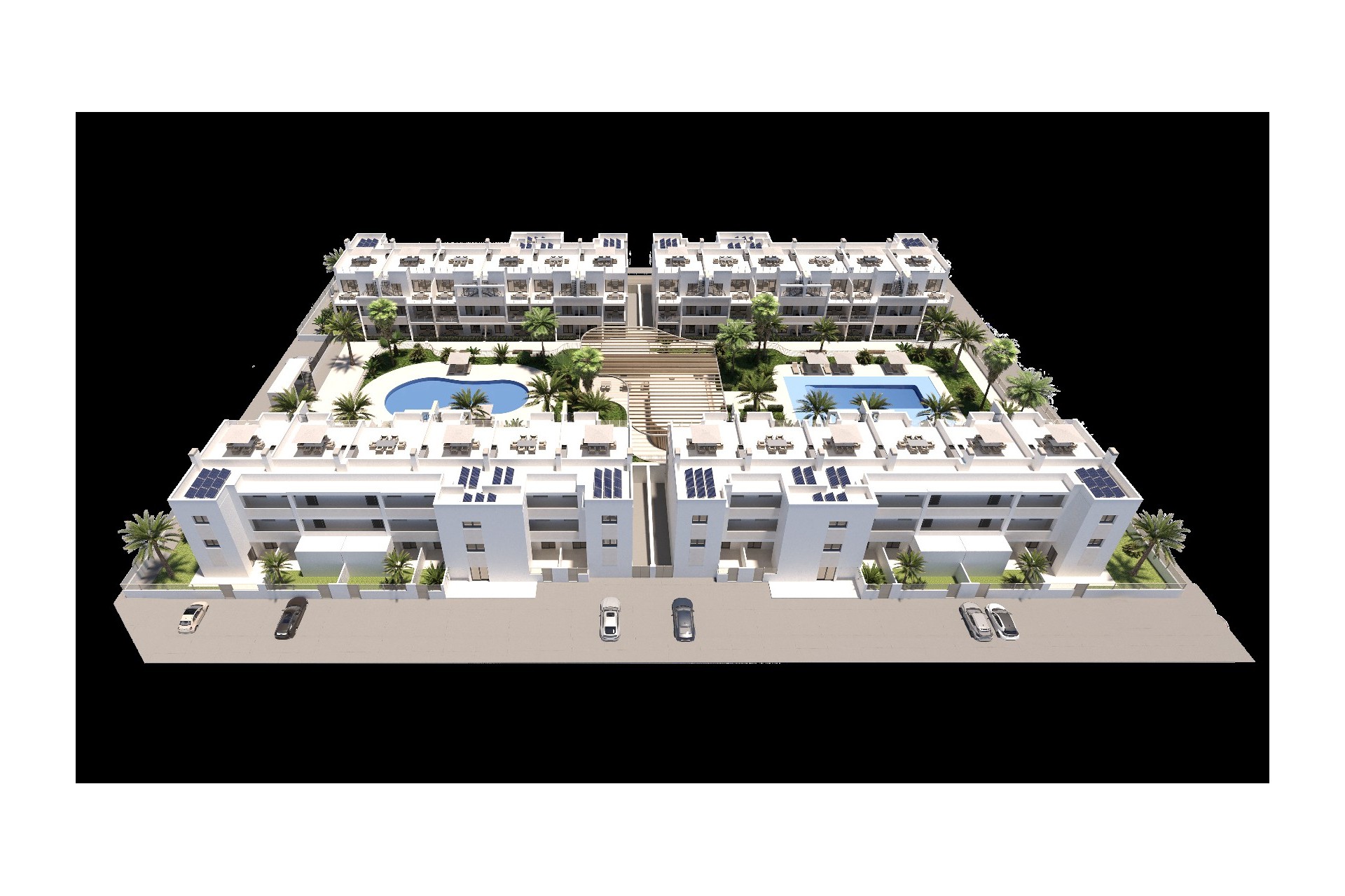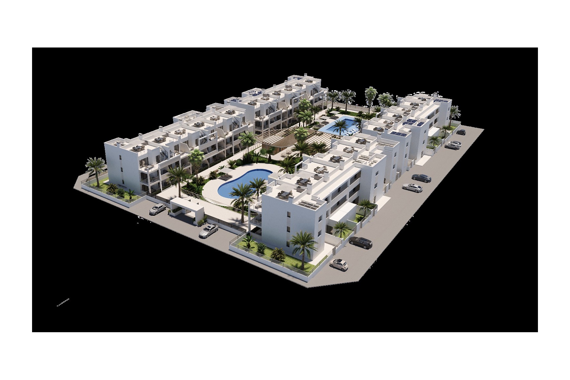 These stylish new-build apartments in Torre Pacheco offer the perfect combination of comfort, modern architecture and a relaxed Mediterranean lifestyle. You can choose between apartments with 2 or 3 bedrooms and 2 bathrooms, ideal as a permanent residence or holiday home in the sun. Each property features a fully fitted kitchen, a bright living area and a spacious terrace and/or private solarium with summer kitchen, allowing you to enjoy outdoor living all year round. Whether you choose a ground-floor apartment with terrace or a top-floor property with solarium, comfort and quality are always at the forefront. For added convenience, every apartment includes a private outdoor parking space and a private storage room, perfect for bicycles, beach equipment or golf gear. Within the residential complex, you can enjoy beautiful communal areas with two swimming pools, spacious sunbathing areas and an outdoor gym, ideal for relaxing or staying active under the Spanish sun. The location in Torre Pacheco offers excellent accessibility and is just a short distance from golf courses, beaches, shops and restaurants. An ideal place to enjoy peace, comfort and the very best of the Costa Cálida. Prices subject to availability. Contact us for more information.