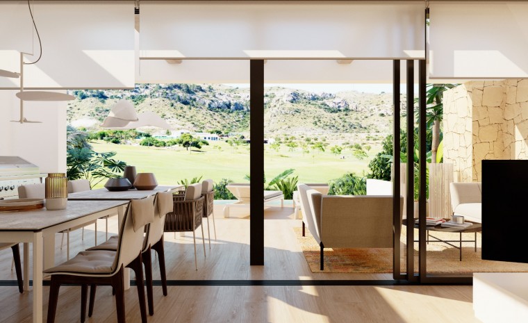 You will be able to enjoy a spectacular sunrise and sunset all year round, as there are the best views of the golf course from these first-line villas, with windows that are properly oriented and protected to give you that summer feeling during the winter months as they allow the sun to warm and illuminate inside the homes.