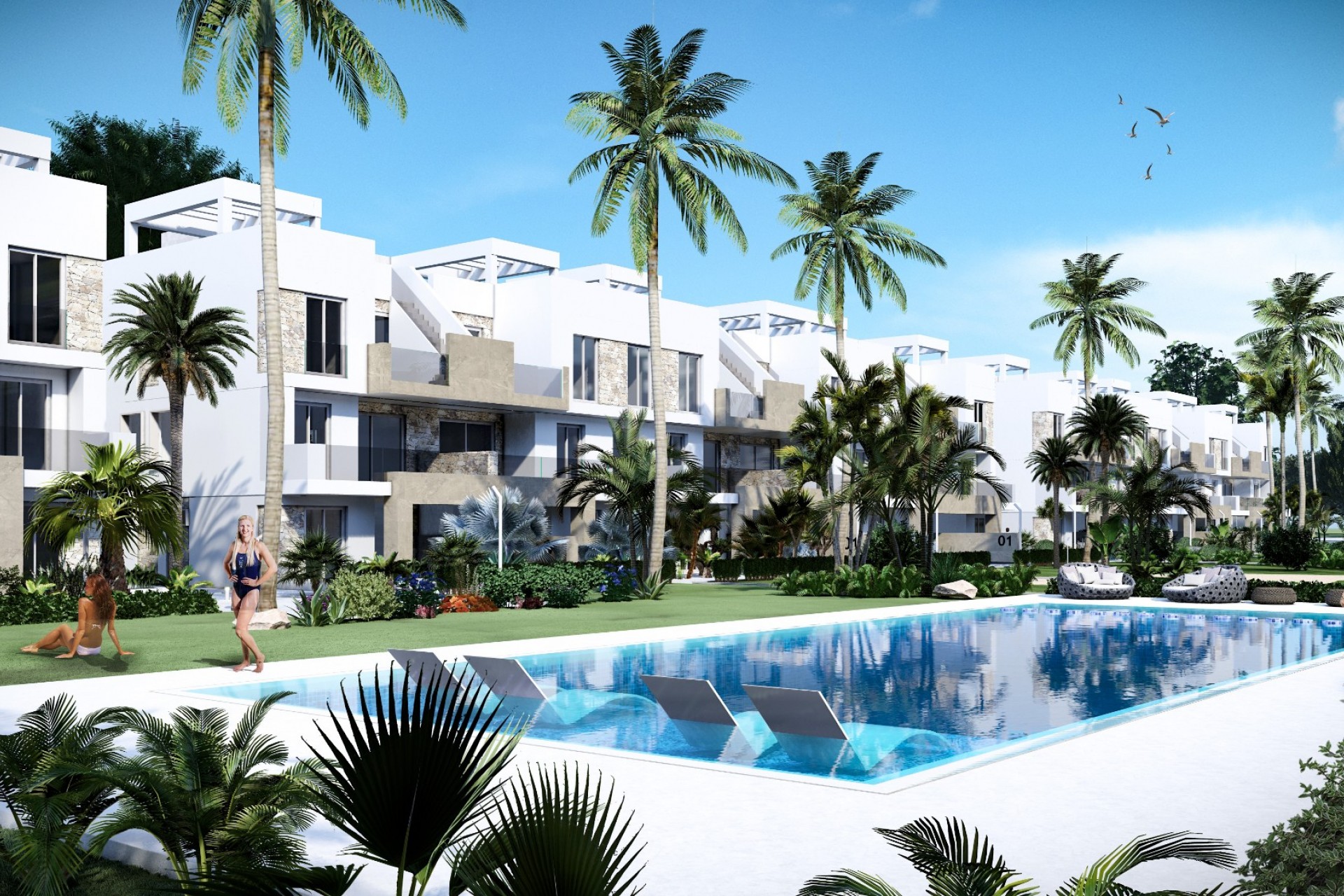 These homes are in a private residential complex, composing 114 homes with 2 or 3 bedrooms, designed in a minimalist way and with high quality standards. Its modern architecture harmonizes with the large open spaces, nature and swimming pool, offering a unique and relaxing environment. The apartment are either ground floor with a garden, 1st floor with a terrace or top floor with a terrace and solarium. These lovely properties are sold FULLY FURNISHED with white goods, lighting, blinds and air conditioning!