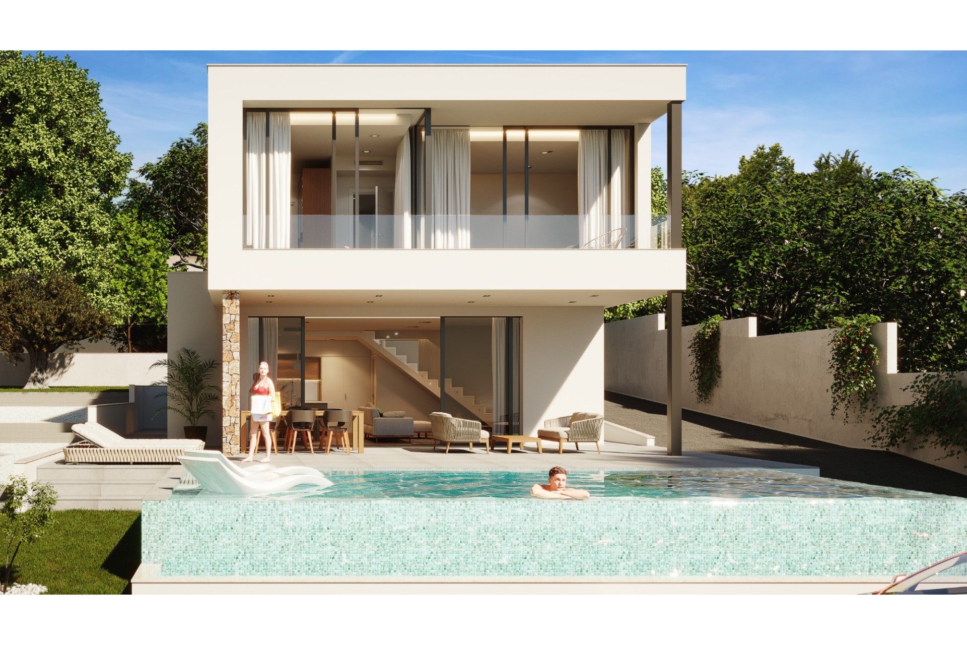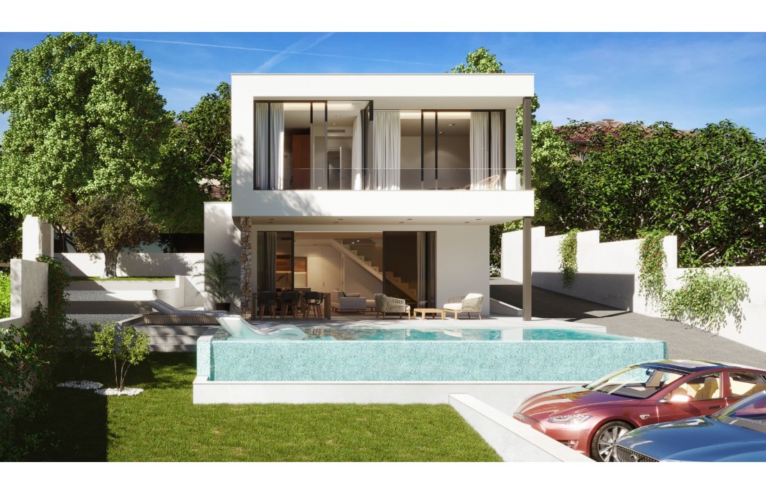 Exquisite luxury villa spanning 180 M2, boasting an expansive infinity pool of 40 M2 alongside a jacuzzi area, all set within a generous plot of 870 M2. Revel in the breathtaking sea views from the terrace area, while the private garden enveloping the property invites you to bask in the sunshine year-round.